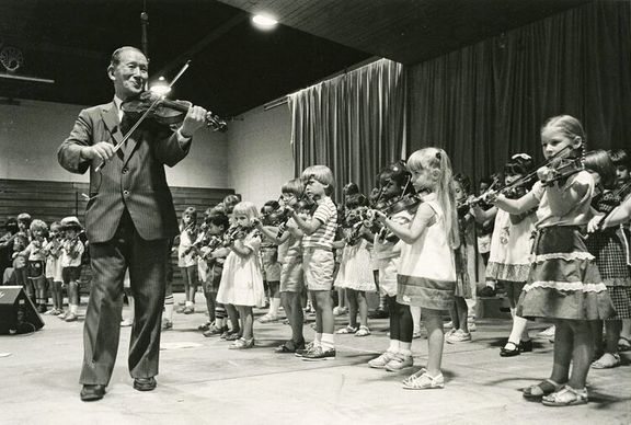 This method was developed in the mid 20th century by the violinist and pedagogue, Shinichi Suzuki (1898-1998). Dr. Suzuki was amazed by how easily children learn to speak, and eventually read, their mother tongue language fluently and with relative ease. He found a way to apply the principles of language acquisition to learning the violin. This approach is now one of the most widely used forms of music education in the world.